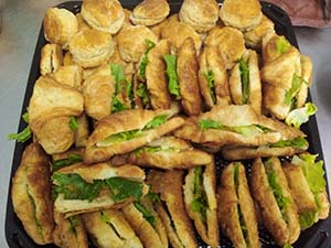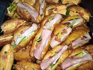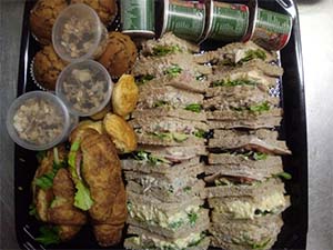16 Sanwiches, 4 muffins, 4 Scones, 4 Croissants, 4 Muesli with yoghurt