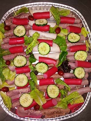 Spiced beef, chicken poloni, chilli poloni, pressed beef, vienas served with dip +salad