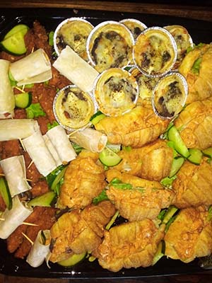 10 Chicken Strips, 10 Rosetto Balls, 10 samoosas, 10 springrolls