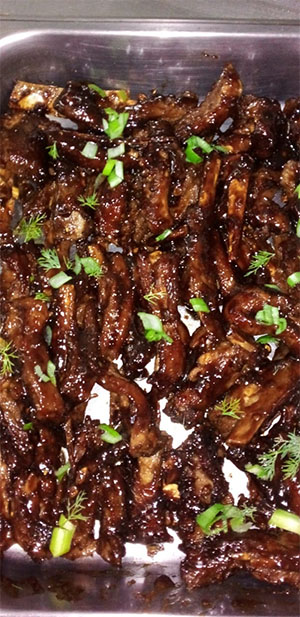 50 fire grilled mini ribs coated in a luscious, sticky glaze